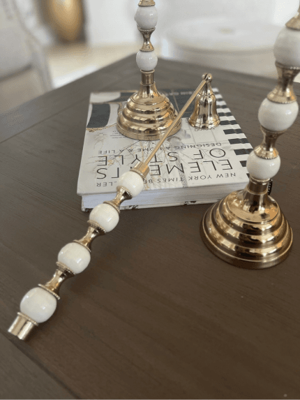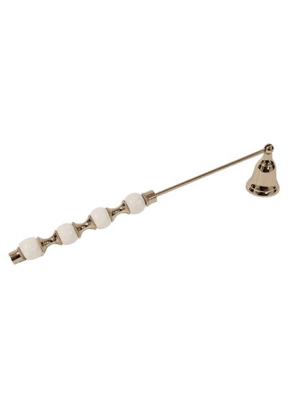 Gold Candle Snuffer with White and Gold Beaded Handle