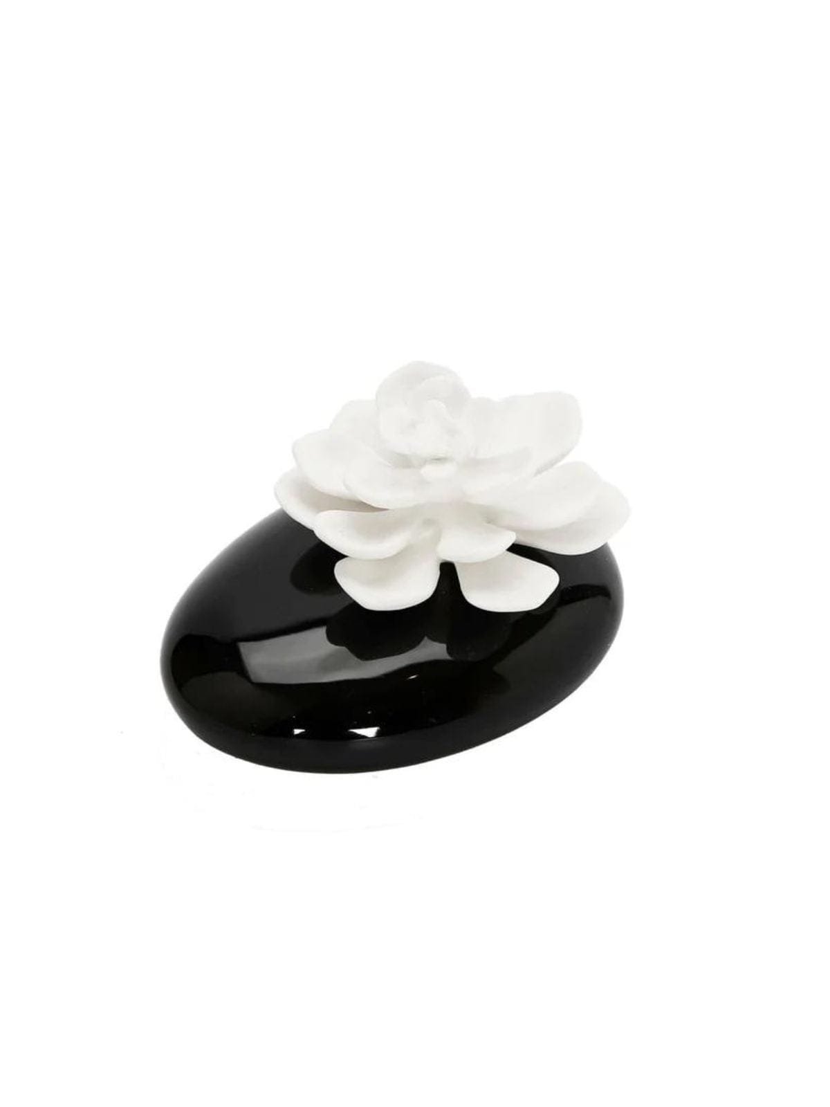 Home Luxury Home Fragrances Black Ceramic Diffuser With White Dimensional Flower