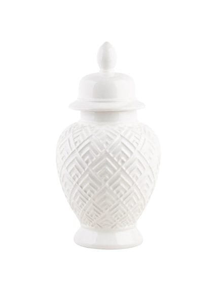 White Geometric Ginger Jar with Diamond Patterns - 12.5in $69.99