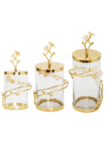 The Cherry Blossom Glass Canister with Gold Lid and ?Enamel Flower Design on Knob has an elegant and decorous design. Add some charm to these attractive canisters. by arranging them according to their different sizes and filled with sugary sweets. They will please everyone- and we don’t only mean the goodies here.?