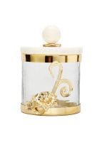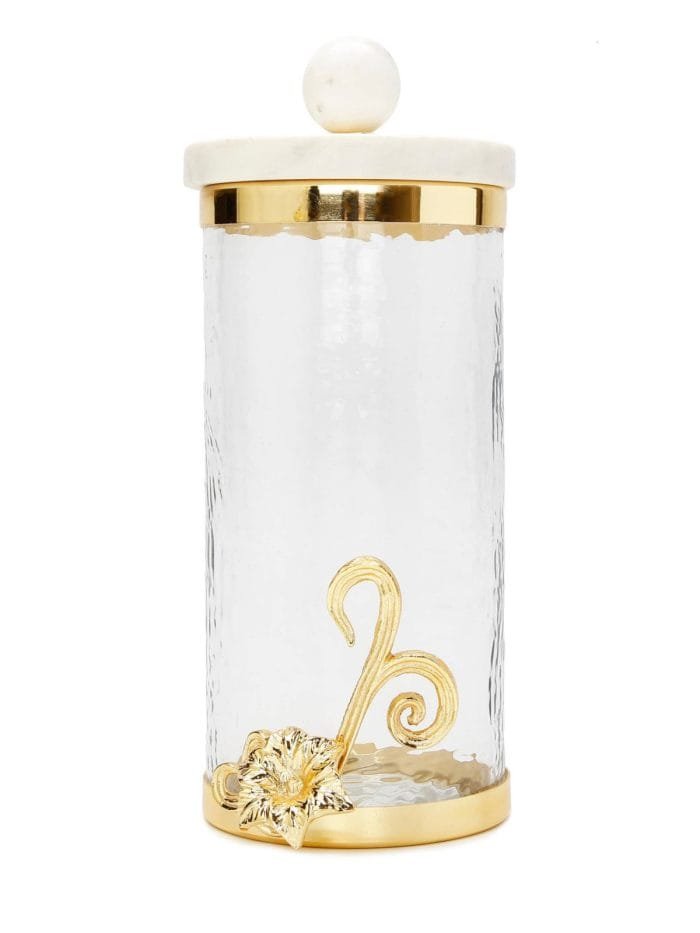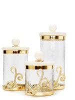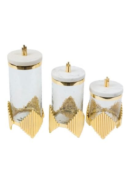These beautiful glass canisters with gold floral design are perfect showcase on your coffee station. kitchen counter. or anywhere you need storage. The marble lid adds extra elegance and sophistication to the unique gold floral design.?
