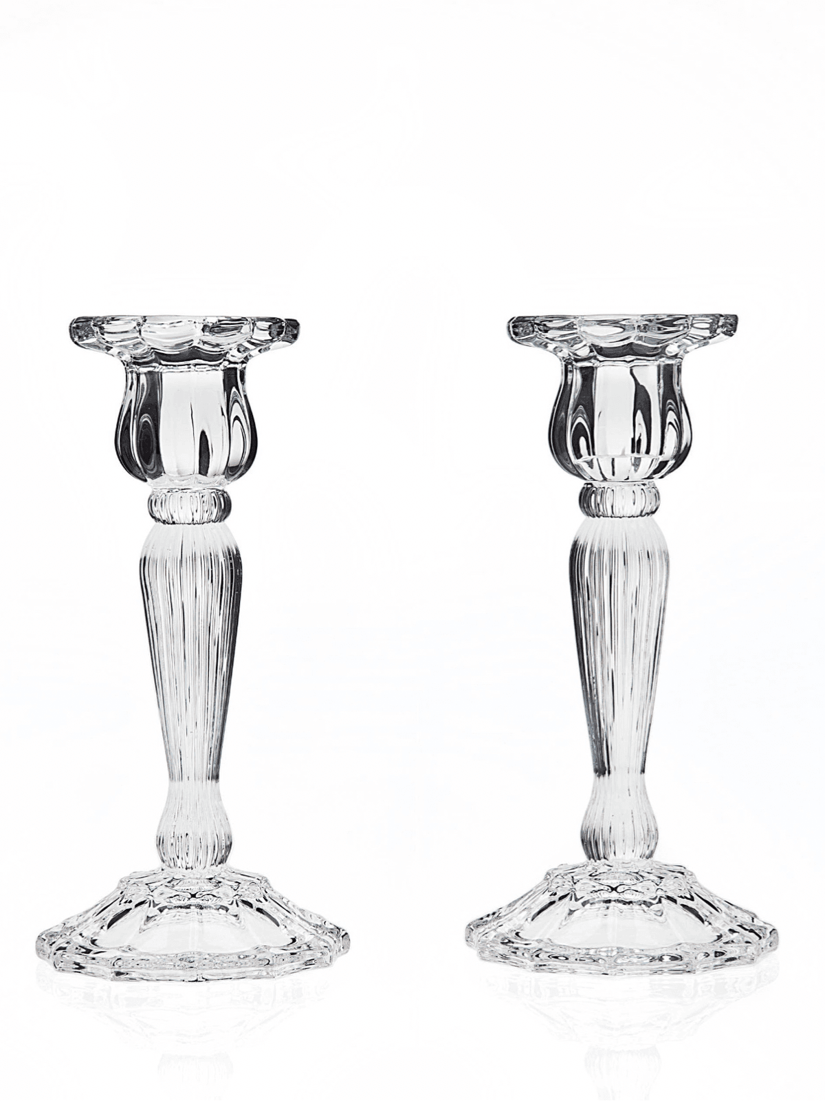 These Stunning Candlestick Holders will help create elegant ambience on your tablescape. Beautifully crafted from fine crystal. the traditional fluted design and brilliant sparkle will look gorgeous on your dining table.