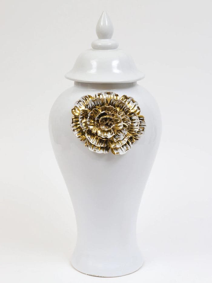 White Ceramic Ginger Jars with Gold & White Flower (2 Sizes) $149.99 – $159.99