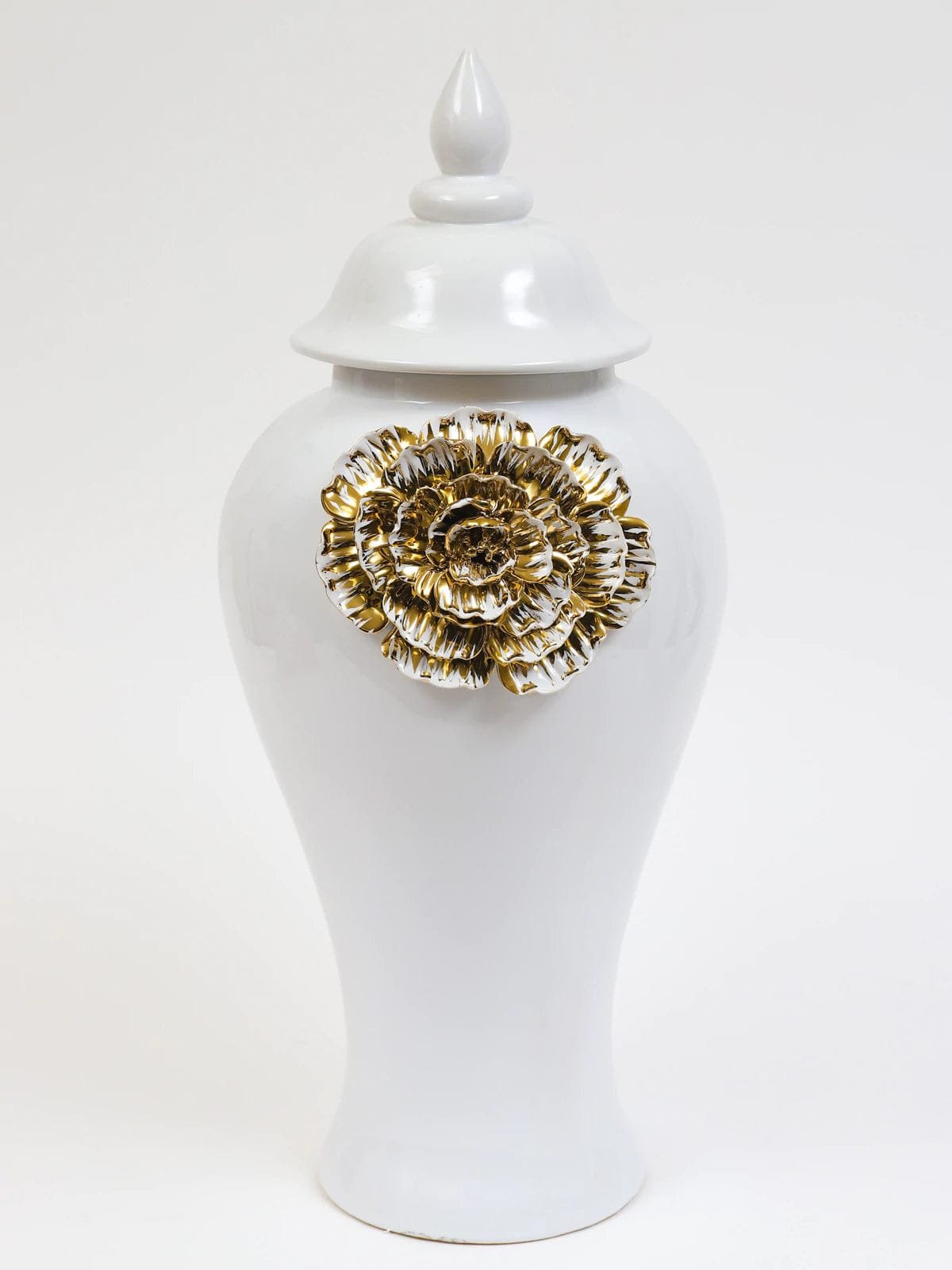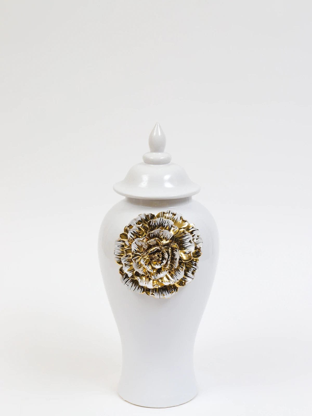 Ellarose White Ginger Jar with Large Gold Flower Detail (3 Sizes)