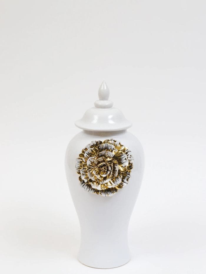 Be the first to review “Ellarose White Ginger Jar with Large Gold Flower Detail (3 Sizes)” Cancel reply