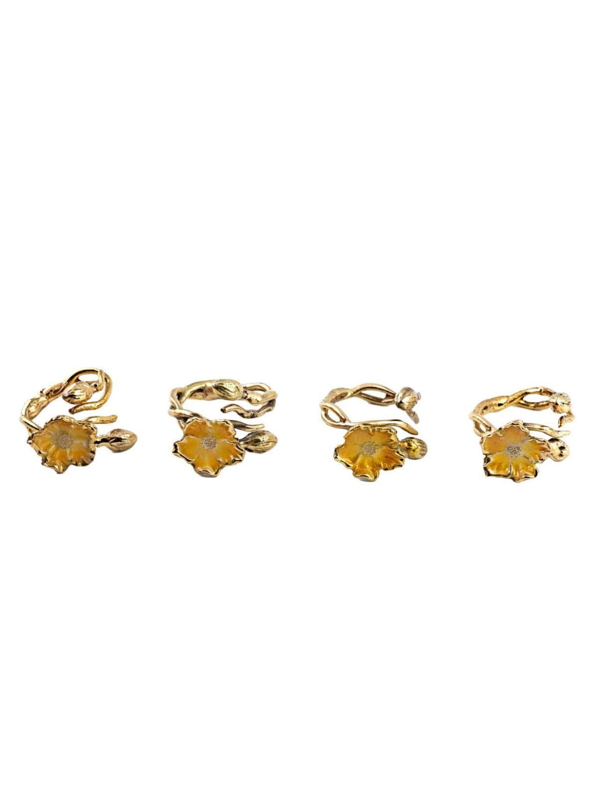 Ellebore Gold Metallic Round Napkin Rings with Flower Design (Set of 4)