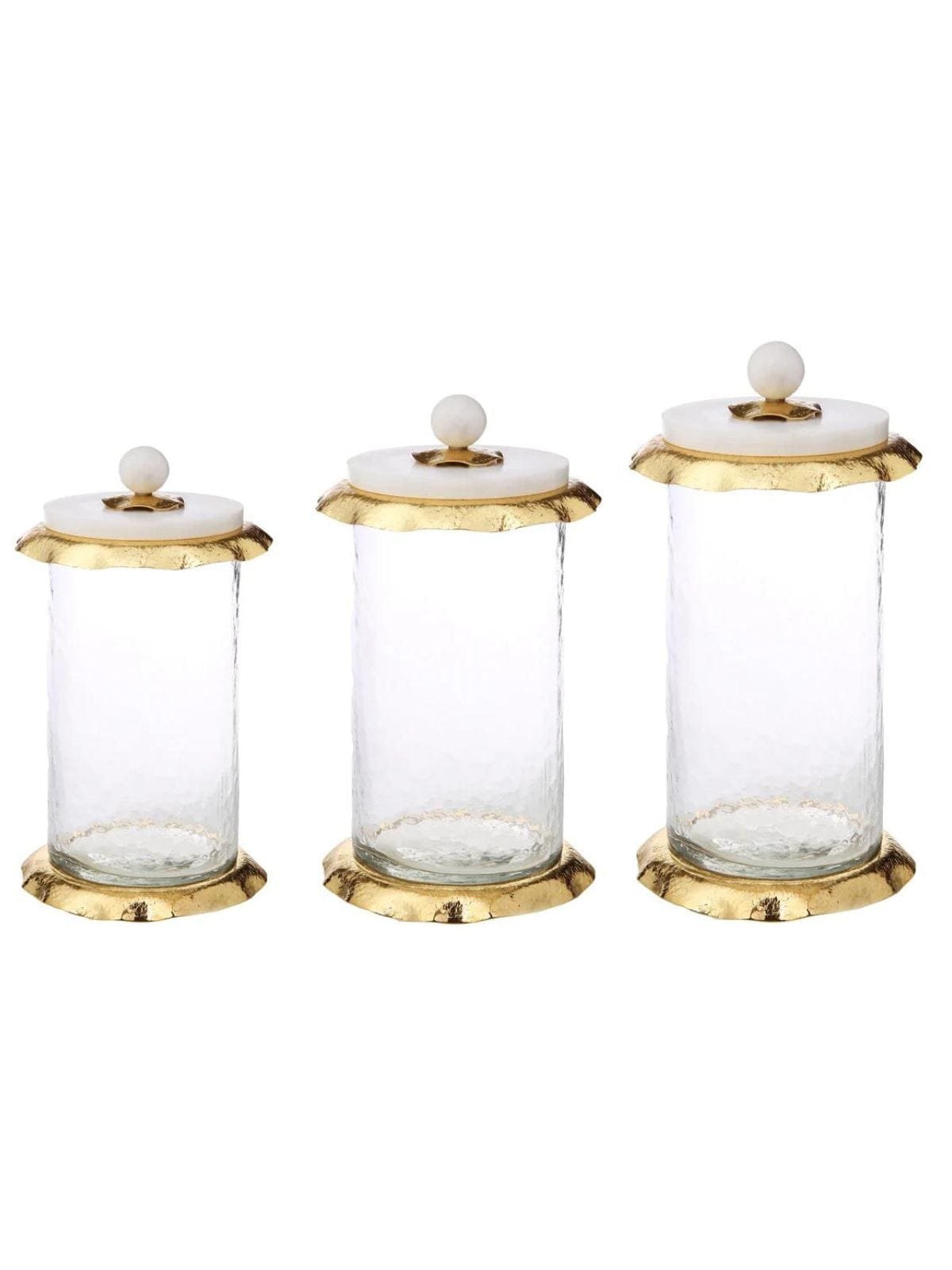 Glass Canister with Gold Hammered Rim and Marble Lid (3 Sizes)
