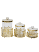 This Stunning Glass Canister with Marble Lid has an elegant and decorous gold linear design.?They are perfect to hold your favorite treats.?It will surely add beauty to your kitchen space which you’ll love so much!.