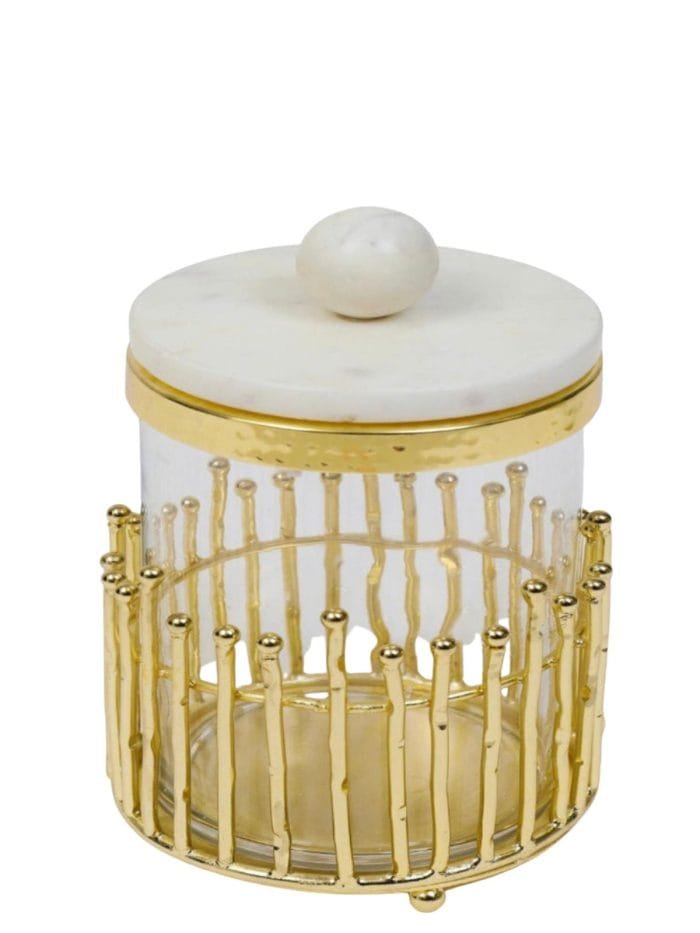 This Stunning Glass Canister with Marble Lid has an elegant and decorous gold linear design.?They are perfect to hold your favorite treats.?It will surely add beauty to your kitchen space which you’ll love so much!.