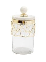 SKU: glass-canister-with-gold-mesh-design-and-m Category: Canisters and Kitchen Jars Tags: Glass & Gold Trim, Glass Jars