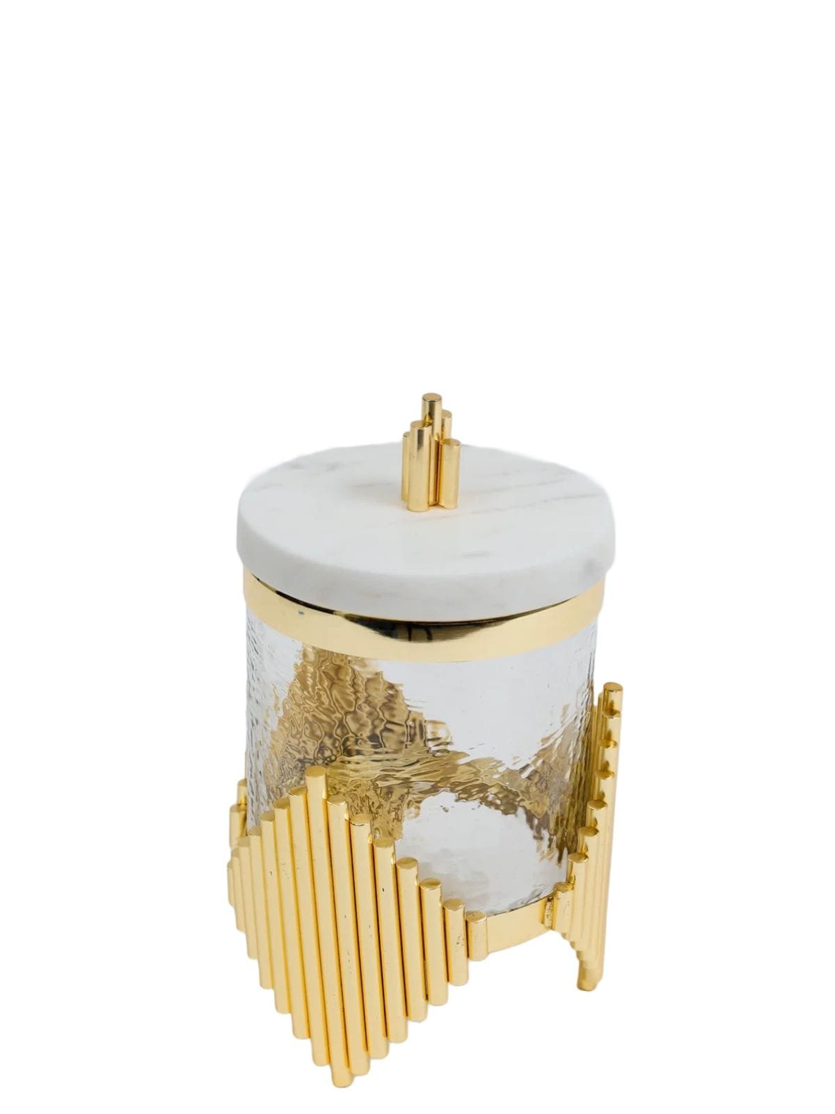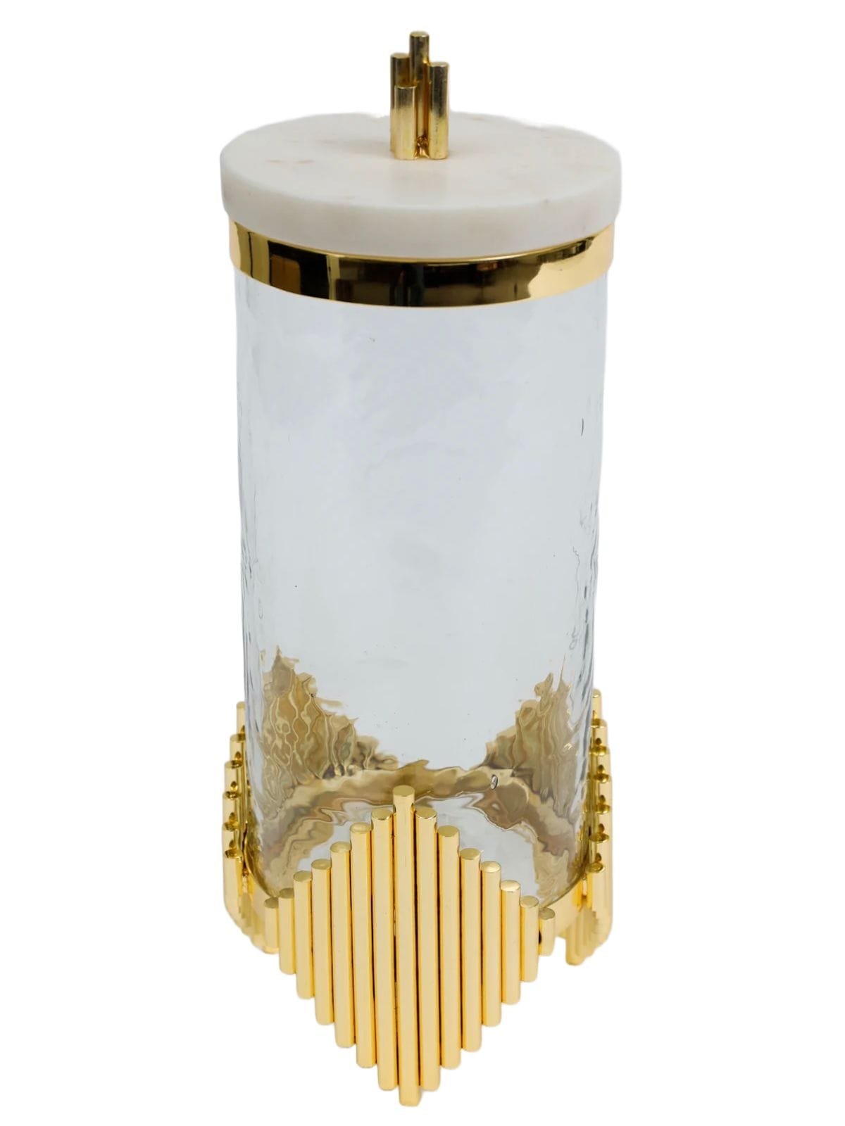 Glass Canister With Gold Twig Base and Marble Lid (3 Sizes)