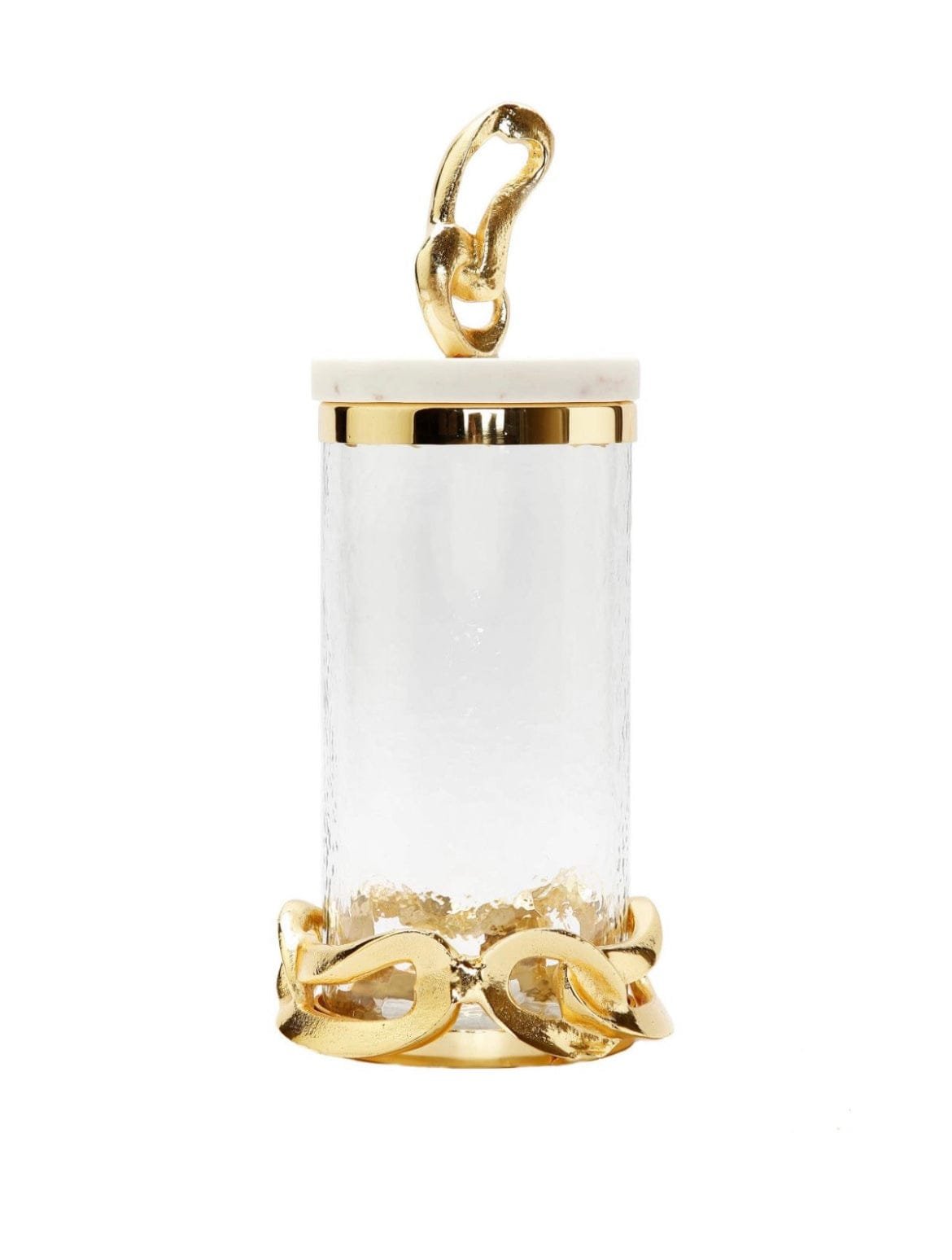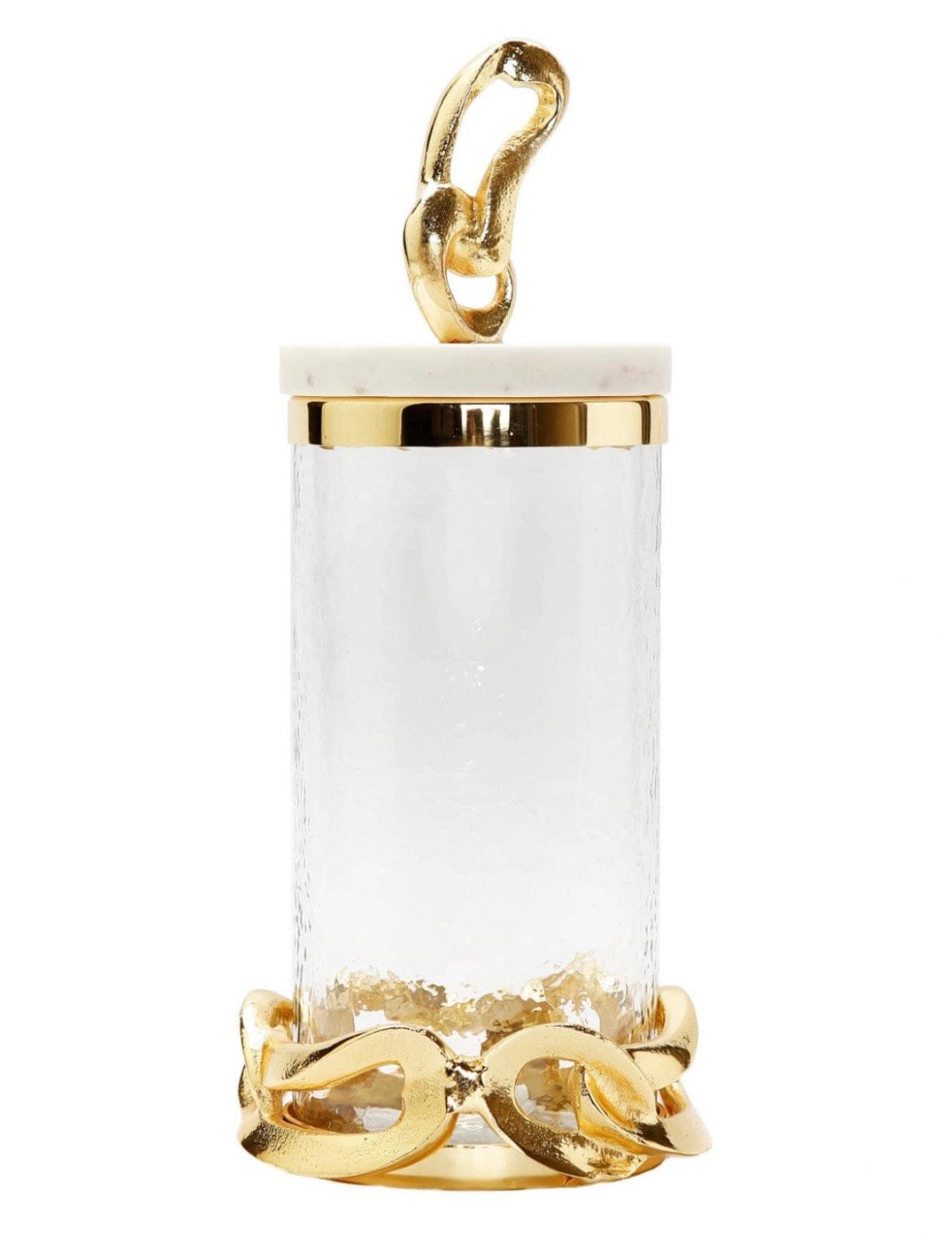 This glass canister with a marble lid has a beautiful gold chain design nestled at?the bottom and top making them?stunning and a must-have for your coffee station. Above all. you can fill these canisters with homemade cookies and pastries to preserve their freshness and moisture.