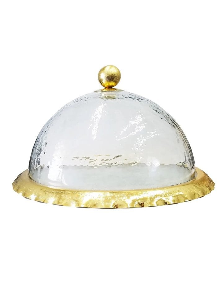 - Luxury Glass Dome Cake Stand with Gold Border Plate