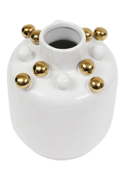White Ceramic Vase with Gold Studs (2 Sizes)