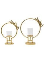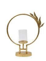 Gold Circle Hurricane Candle Holder with Leaf Design (2 Sizes)
