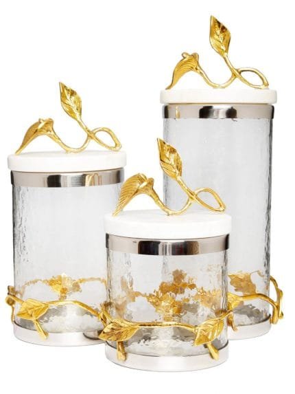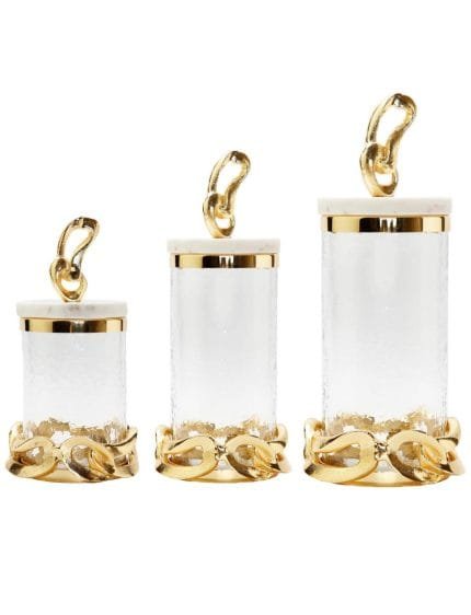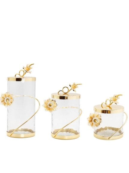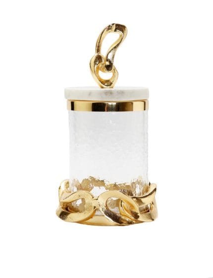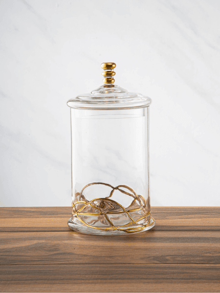 This elegantly designed gold decorative jar will upgrade any table setting with a flair of elegance. Fill it with your favorite goodies and place it on the table for a sweet addition to a family meal.