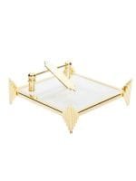 This glass base napkin holder has?a diamond design?and finished in a lustrous gold?color.?It’s also cleverly designed with a weighted tongue that keeps napkins neatly in place.