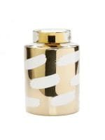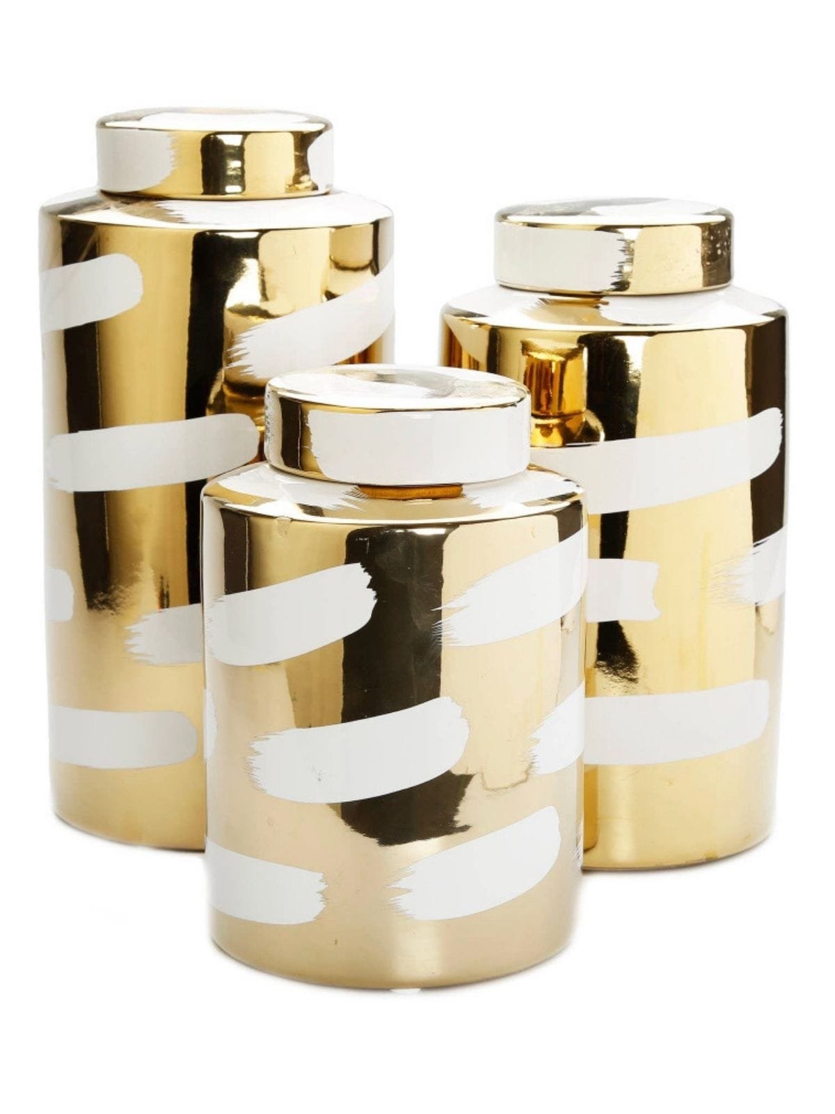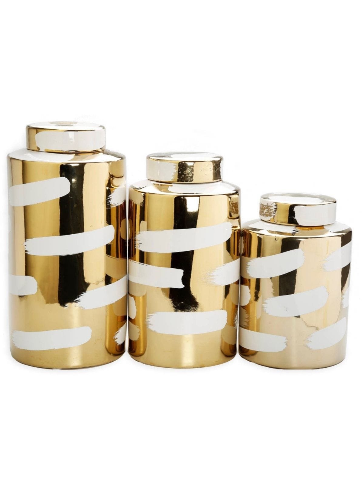 Gold Porcelain Jar with White Brushstroke Detail and Lid (3 Sizes)