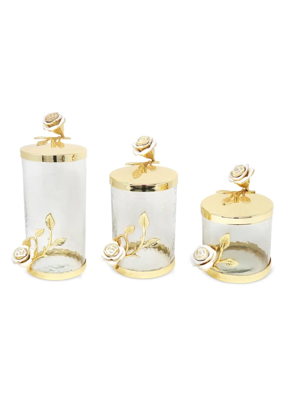 Glass Canister with Gold Heart Design and Silver Trim (3 Sizes) $54.99 – $76.99