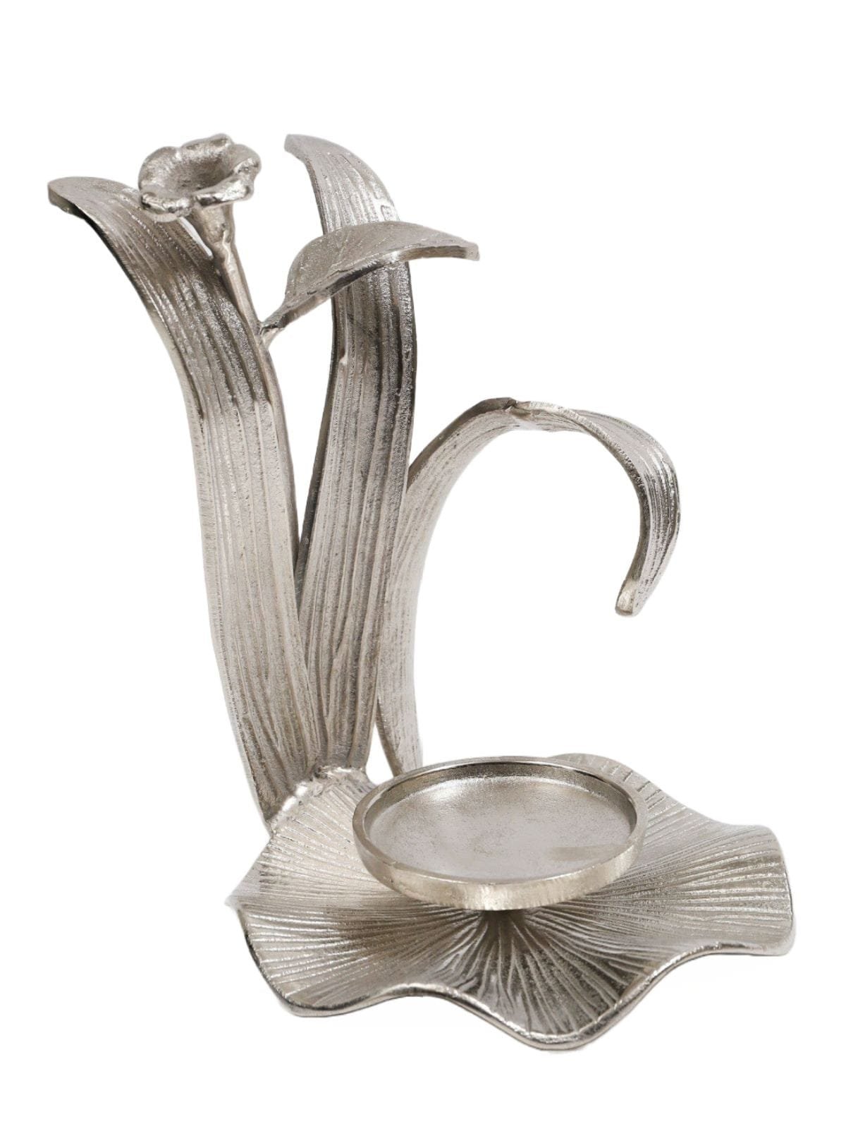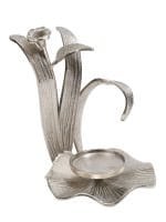 This beautiful flower hurricane is perfect for your candle to sit on! It is propped by a unique enamel flower design that seems to be stemming out.?Looks great on trays and tables.