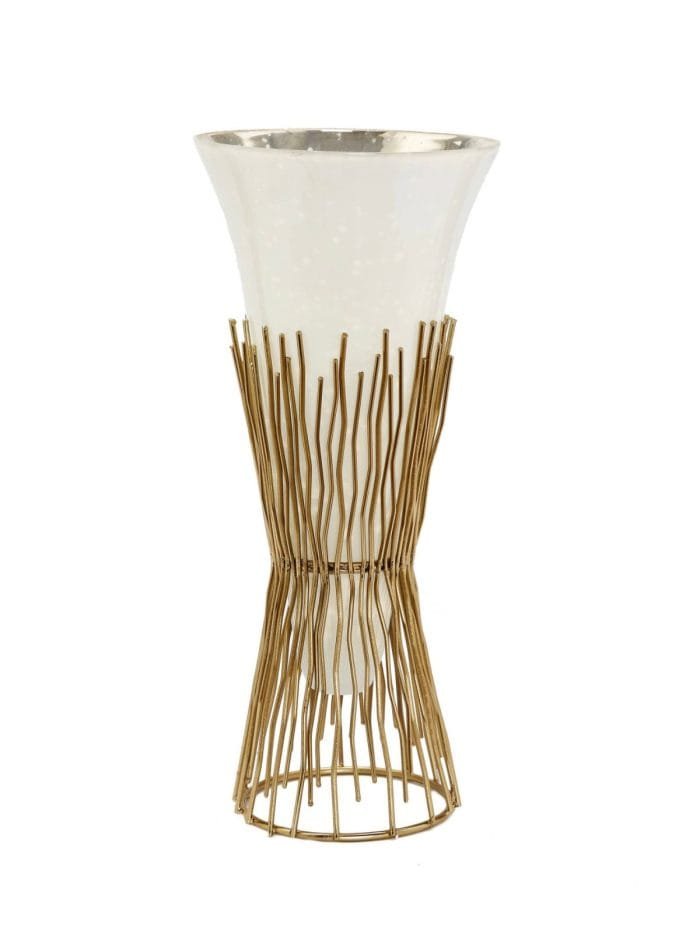 The magnificent Opaque Glass Vase brings an extra oomph to every display setting. It is decorated with glossy gold twigs beautifying the glass Vase. This Vase can be used at any occasion or as a centerpiece to decorate your living area.