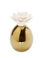 Matte Gold Porcelain Diffuser with White Dimensional Flower