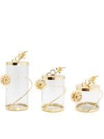 The Rose of Sharon Glass Canister with Gold Lid and ?Enamel Flower Design on Knob has an elegant and decorous design. Canisters are useful accessories that always appear appropriate wherever they are placed. To add some charm to these attractive canisters. arrange them according to their different sizes and filled with sugary sweets. They will please everyone- and we don’t only mean the goodies here.