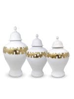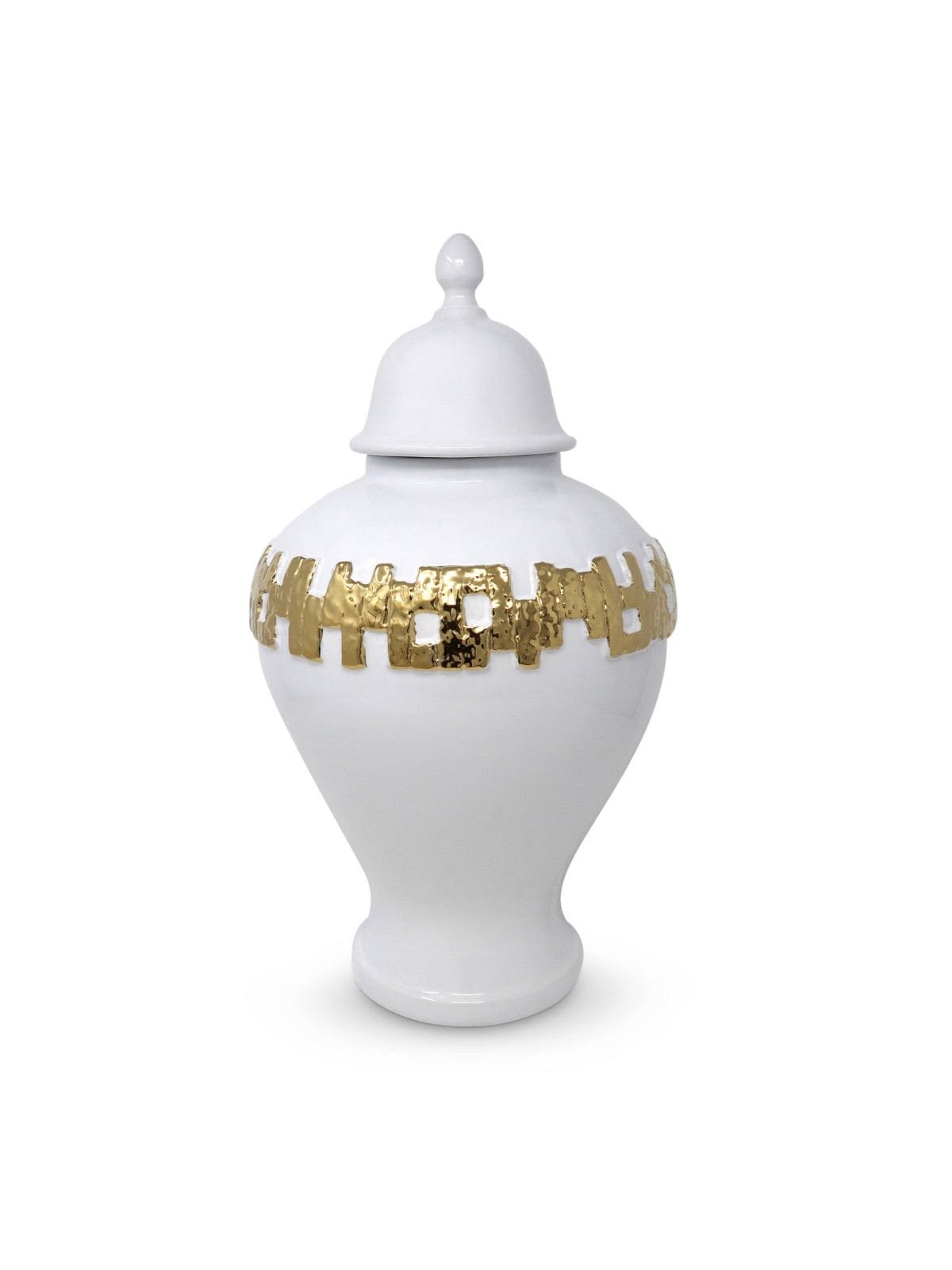 White Ceramic Ginger Jar with Gold Link Design (3 Sizes)