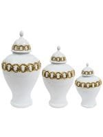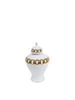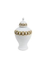 White Ceramic Ginger Jar with Stunning Gold Chain Details (3 Sizes)