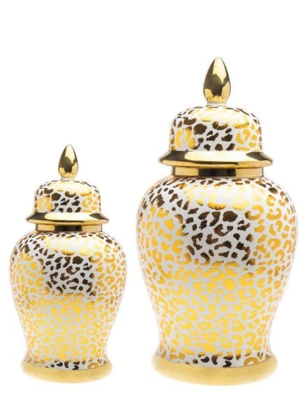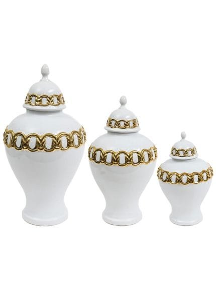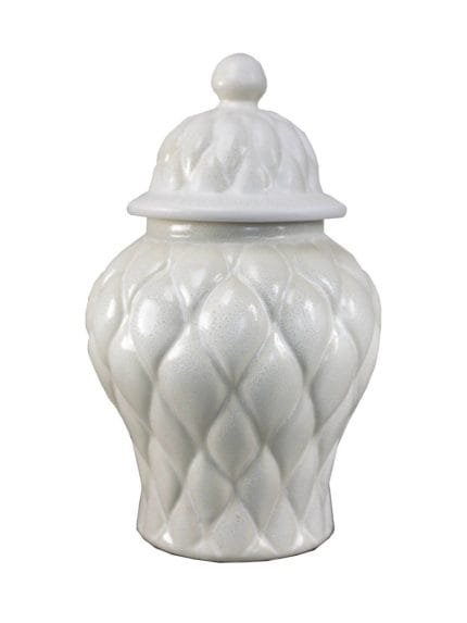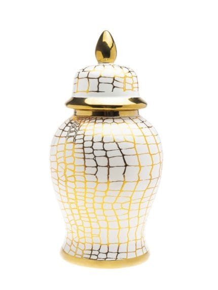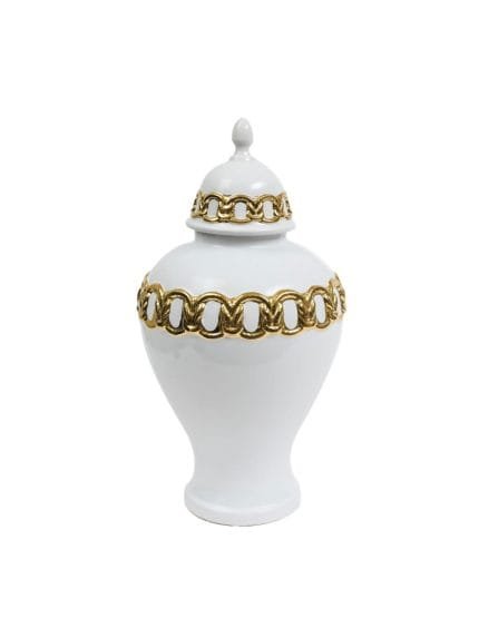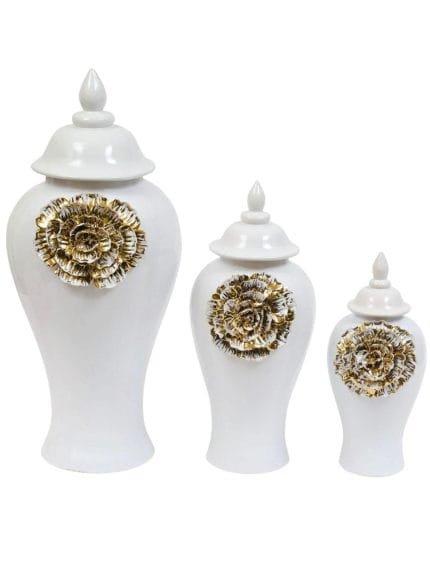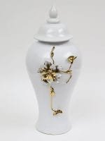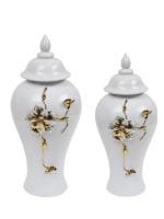This Luxurious White Ceramic Ginger Jar has a stunning gold and white flower design that will definitely impress!