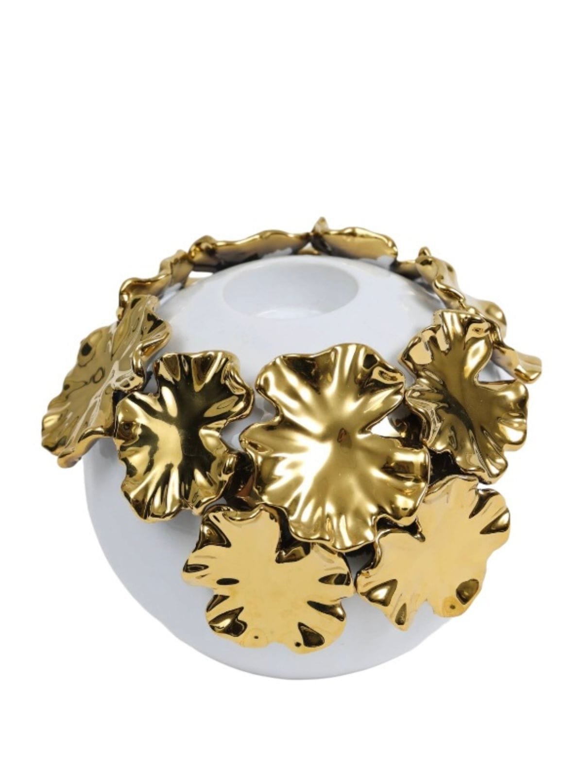 Set the mood and enjoy a warming atmosphere with this beautiful white ceramic round tealight holder. They have a stunning gold floral cascading design and are simply beautiful.?Place it on your side table or combine a few sizes?to make a dramatic centerpiece.?