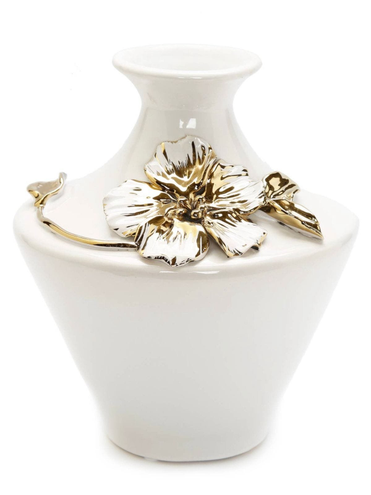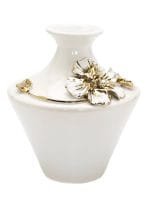 White Ceramic Vase With 3D Gold and White Floral Detail