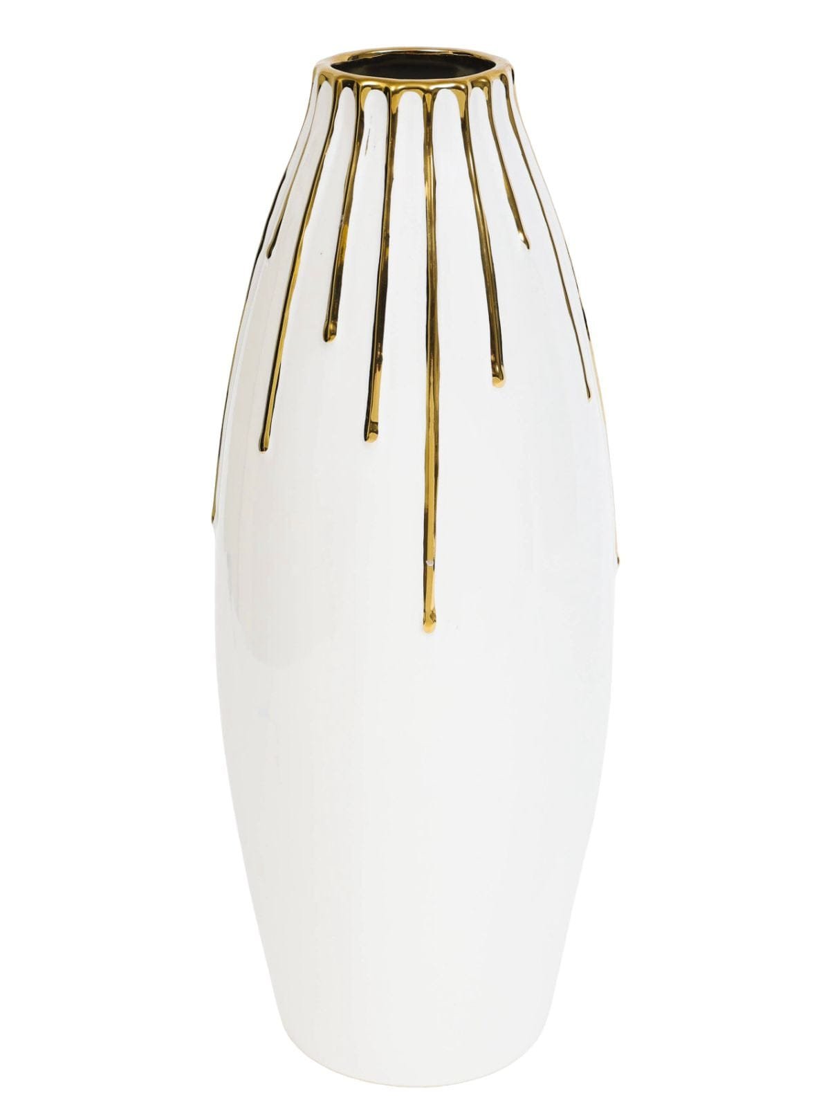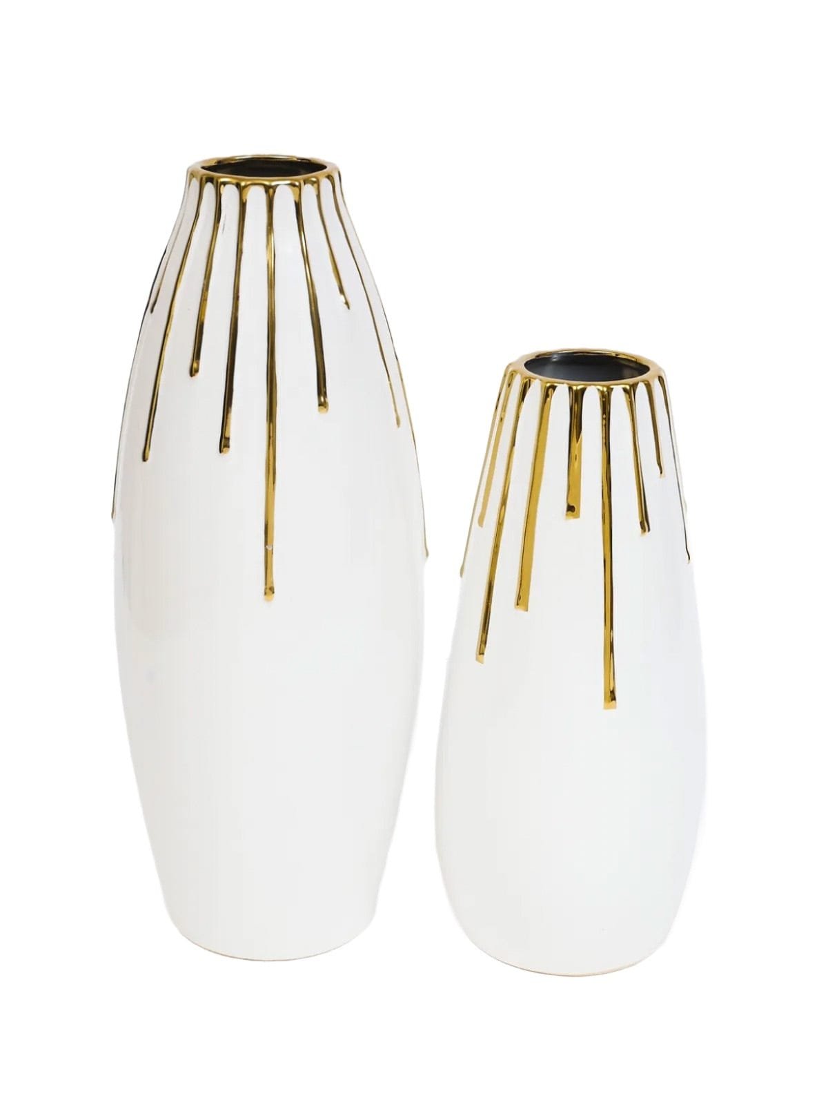 White Ceramic Vase with Gold Drip Design (2 Sizes)