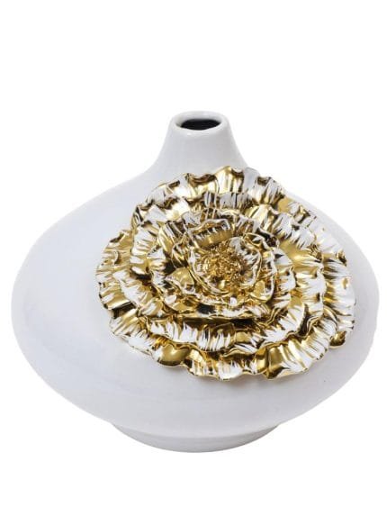 White Ceramic Vase with 3D Gold Flower Design $89.99