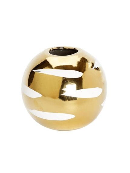 Gold Round Vase with White Brushstroke Detail $34.99