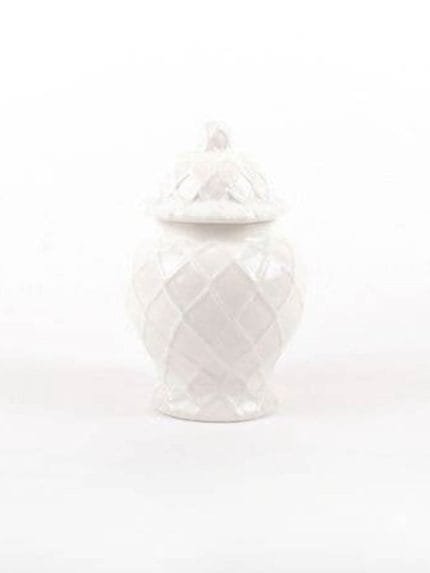 White Ginger Jar with Roped Diamond Design – 8 inch