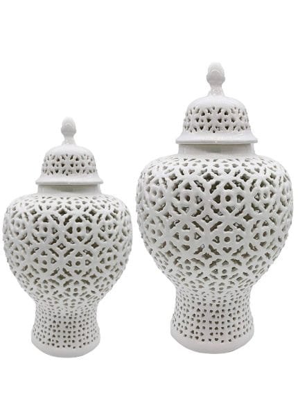 White Ceramic Pierced Ginger Jar (2 Sizes)