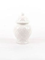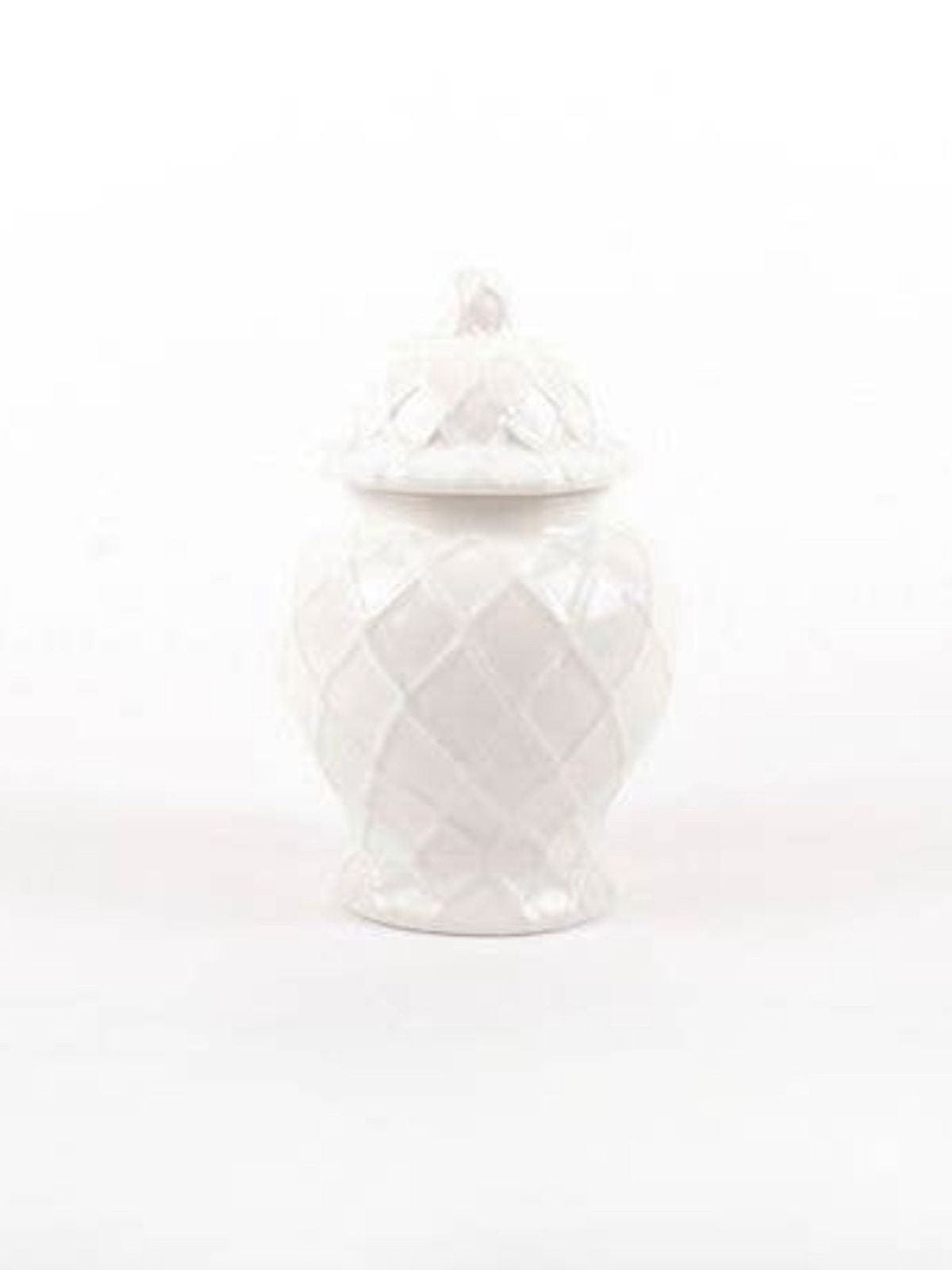 Home Ginger Jars White Ginger Jar with Roped Diamond Design – 8 inch